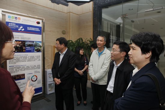 郑建荣副厅长一行首先参观了岭南国际服务外包学院,俞仲文校长和朱敏副校长为来宾一行详细讲解了学院的发展和目前的相关专业,岭南一直注重培养学生的信息技术、技能和语言能力,并向企业定向培养相关专业人才。郑建荣副厅长说:“虽然岭南国际服务外包学院成立的时间不长,但对此方面的管理较完善,发展的速度也很快。”
