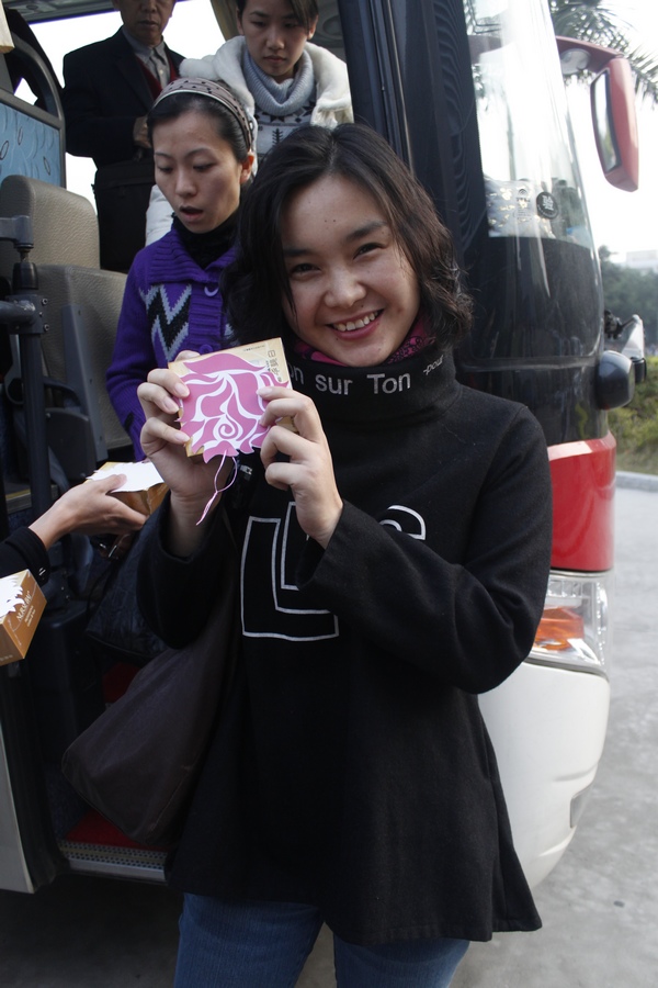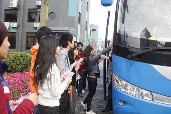 早晨7:30,校团委学生干部齐集于校巴停车场,等候老师们的到来。当一辆辆校巴到达时,学生干部们微笑着走到大巴车门前,为每一位下车的女教师送上精心准备的“奢华美白”防晒霜小礼盒和精美小贺卡。