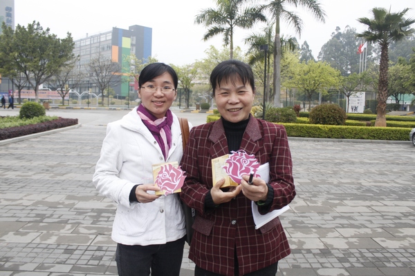 随队学生记者随意采访了几位女老师:“收到学生三八节礼物时,有什么感受和想说的话吗?”她们回答得最多的几句是 “谢谢”、“有点惊喜”、“很开心”、“咱们岭南的学生真不错!”