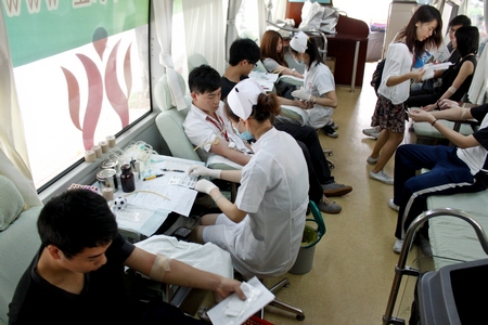 在整个献血活动中,我在思考着一个问题:在现代社会中,懂得无私奉献,对于一个人来说究竟意味着什么。我在同学们的话语中寻找到了答案。有同学说:“献血是爱心的传递,看到很多人在为不认识的人献血,很感动。今天,我能够加入到这个队伍中来很开心。”也有同学说:“献血既为社会奉献了自己的力量,也在一定程度上有利于自己的身体健康,这是一件给予别人快乐同时也给予自己快乐在事情。”看来,他们都在无私付出的同时寻找到了一种快乐。从他们的脸上,我们也分明看到了这种快乐。