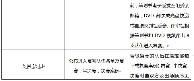 1.初赛:5月10日前,各院校自行举办初赛,选拔1支队伍参加省级比赛,策划书电子版于5月10日前发至组委会邮箱gdin_mnswtpzl2013@126.com,DVD刻录成光盘快递或直接交到组委会,以邮戳时间为准。联系地址:广州市天河区中山大道西293号广东技术师范学院团委,邮编:510665。