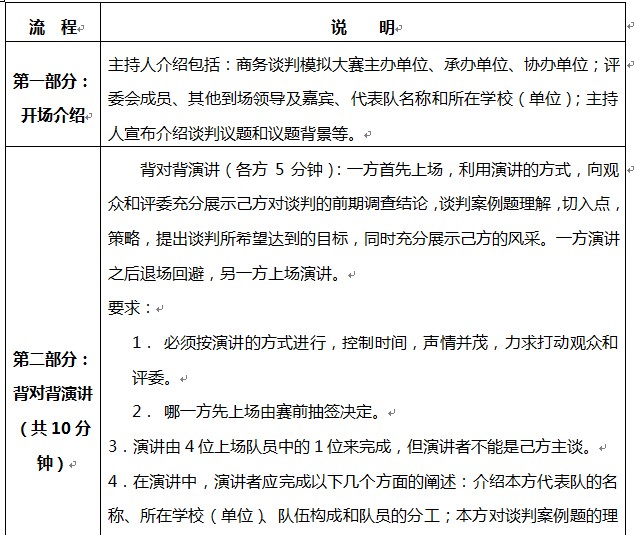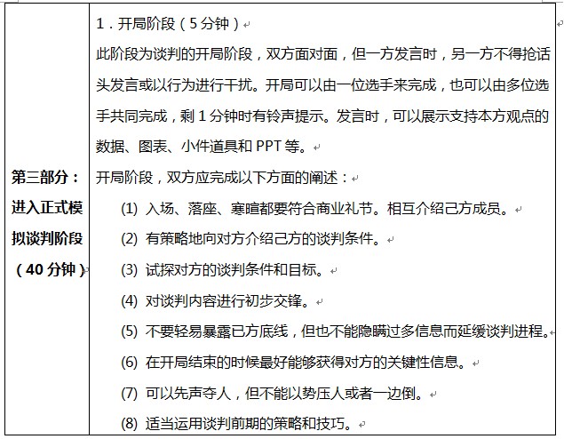 6.参赛团队若出现违规(如扰乱谈判竞赛过程、蓄意制造虚假谈判现象等)行为,将取消其继续参加比赛和评奖的资格。