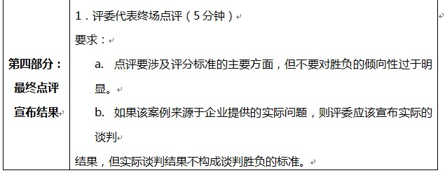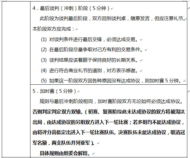 四、参赛团队在参赛期间不出现违规(如扰乱谈判竞赛过程、蓄意制造虚假谈判现象等)行为。