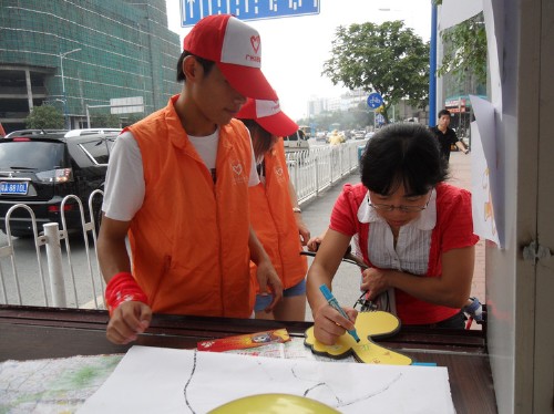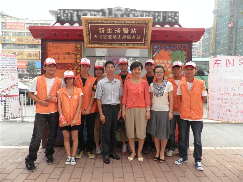 上午9点30分,当志愿者们正忙于为路人指路、为小朋友派发小气球宣传亚运小知识的时候,徐书记出现了:“同学们辛苦了。”她和蔼的笑容、关心的问候让志愿们感到十分亲切。她还关切地了解了东圃站开站运作情况,包括宣传物资是否齐全、后勤保障是否到位等细小问题。当她看到我们把那新生活驿站的“西关小屋”布置得温馨别致、志愿者们把手工绘制的广州地铁线路图张贴起来时,对志愿们那分热情和细心大嘉赞赏。随后,团区委徐书记、李老师和我院团委谢老师一起,为东圃服务站的开站运行进行了揭幕,这标志着该站成为天河区第二个亚运城市志愿服务站正式运行。
