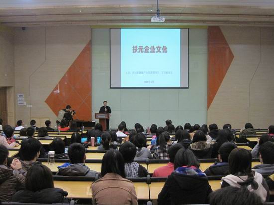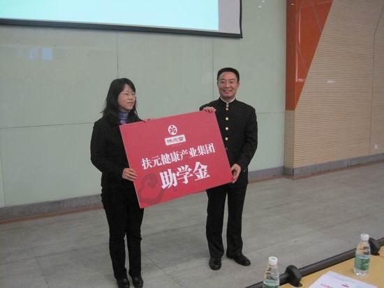 王扶松董事长是中山大学EMBA硕士、副教授,政协广东省委委员会委员、世界中医药联合会亚健康专委会常委 、中华中医药学会养生康复分会副会长、扶元堂健康产业集团扶元疗法创始人,带来的《扶元堂企业文化》课程深深的感动了同学们,“爱心做事、感恩做人”的企业宗旨体现在每一细节,除给同学们讲课外,王扶松董事长集企业之力给同学们量身编写培训教材、赠送学习用品、培训器械等,并成立扶元堂助学金。