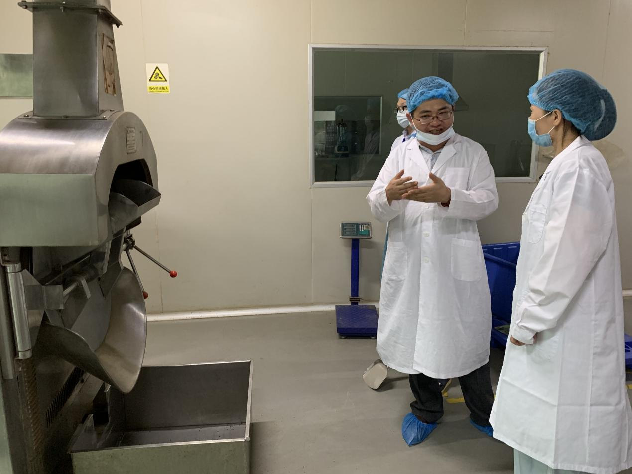 随后程厂长和质量负责人张东浩总监带领我们参观研发检测中心,张总监介绍研发检测中心分部结构和配备的先进仪器,他表示检测中心是目的保障中药饮片安全有效,公司计划引进气质联用、液质联用等更精密仪器,将在中药农残检测方面进一步发展。这方面的项目将可能校企合作的新机遇,同时启示我们的老师在教学过程中,学生能够学会熟练使用检测仪器,随着检测技术与时俱进,是学生获得优质工作的必要条件。