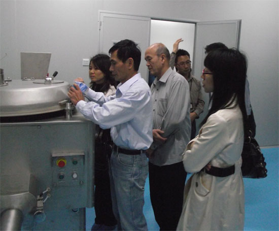 我们此行的目的有三:一是探望在白云区第二GMP生产基地实习已两个月的08级的同学们;二是与广州联存实业互相交流学习,实地考察天然药物在保健品(营养素)研发领域的运用;三是共同探讨进一步的校外实习基地、合作建设天然药物化学校外实验室事宜等。