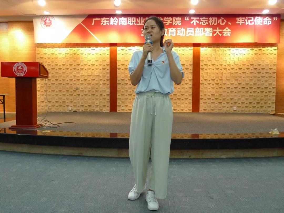 接下来由17级通信技术专业李龙同学代表学生党员发表倡议宣言。在宣言中他提出全院学生要做到三个“不忘”:1.不忘党的创立的原因;2.不忘党的历史使命;3.不忘党的根本宗旨。