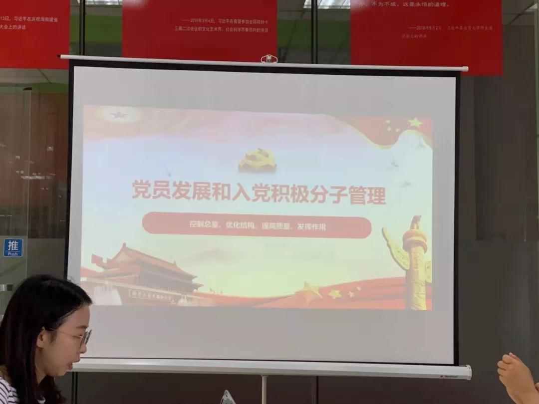 侯翠玲老师就我院党务工作方面作“党员发展和入党积极分子的管理”讲座,其从入党申请、入党积极分子培养、确定发展对象、接收预备党员和预备党员转正五方面详细介绍了学院党员管理工作的细节和流程,重点指出我院党员管理工作要做到控制总量、优化结构、提高质量和发挥作用 。