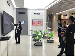 广州视源电子有限公司讲解员为大家介绍企业的成长历程,从最初一间昏暗逼仄的小黑屋,不断壮大发展为现今拥有多家业务子公司的上市企业,视源的技术服务中心已遍布上海、深圳、香港及海外,员工数超4000人。目前产品业务涉及领域宽广,包括数字教学、智能家居、高效会议平台等。