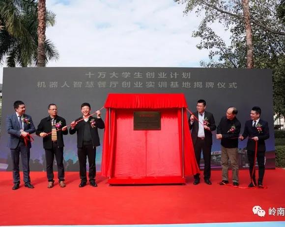 活动当天,广东省青年创业就业基金会、千玺机器人集团与广东岭南职业技术学院合作共建的机器人智慧餐厅创业实训基地正式落成,并举行了揭牌仪式。